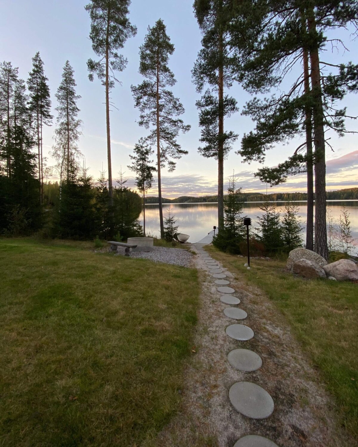 Rantaan ja laiturille pääsee tasaista polkua pitkin.