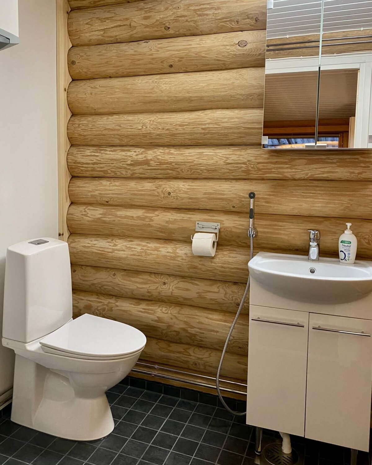 - Pesuhuone: suihkukaappi, lämminvesivaraaja ja tuhkaämpäri.